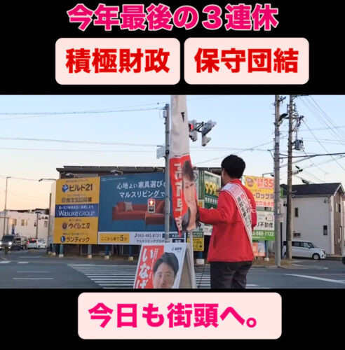 陽が落ちるまで、各所で街頭演説で、積極財政と保守団結を訴えてまいります。