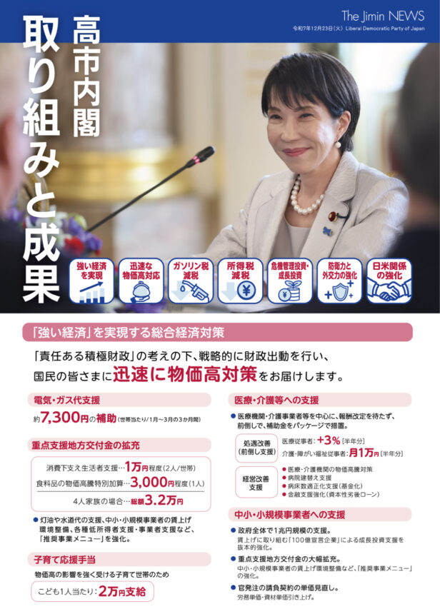 発足から2か月、怒涛の勢いで進む高市政権の取り組みと成果をまとめました。
