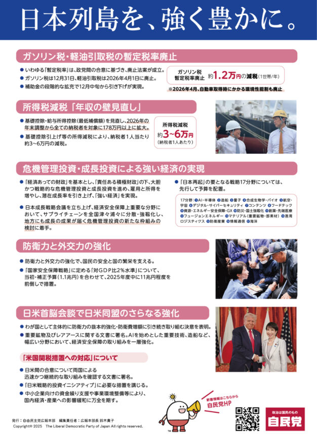 「令和8年度税制改正大綱」「令和8年度予算編成大綱」が党決定されました。